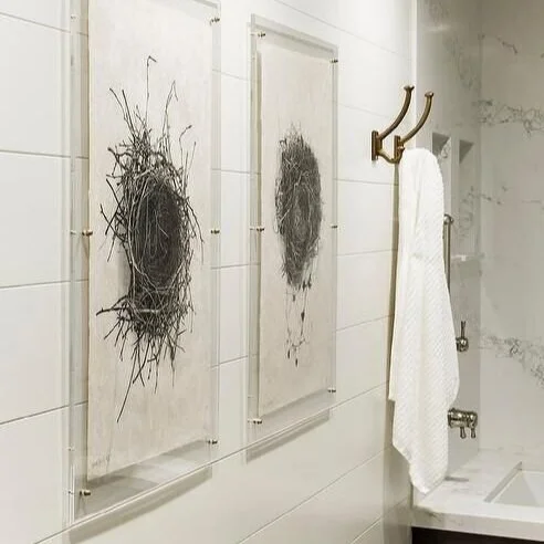 There’s no doubt that putting together a grouping of art is intimidating. With our picture arranging service, Vicki Seebeck comes to your home or office and helps lay out your grouping of art. Templates are created so you can visualize what the picture arrangement will look like. The templates give exact measurements in order to easily manage where nails should go for hanging each piece.